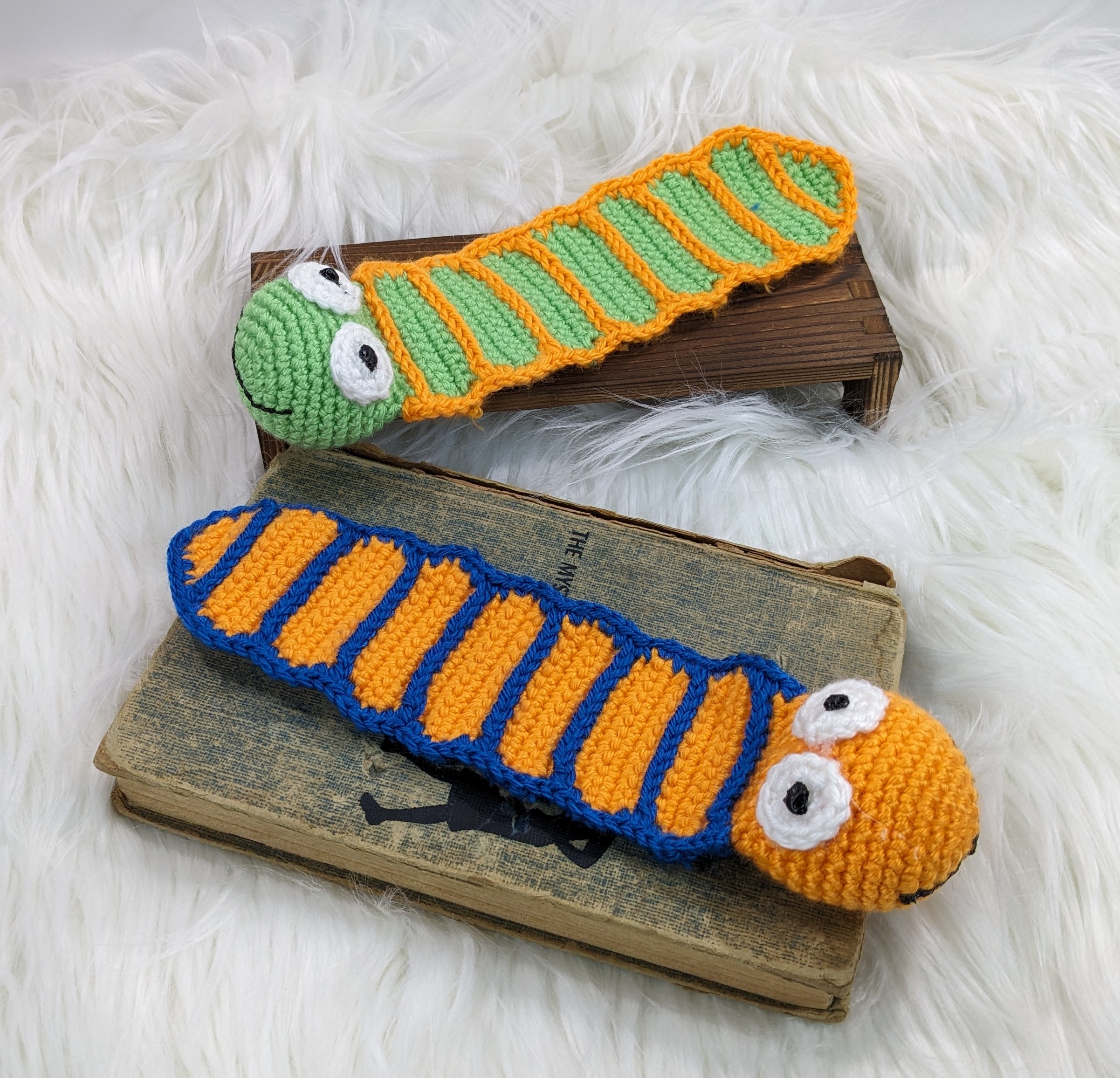 Also Bookworm Bookmarks Orange & Green are hand crochet with acrylic yarn and filled with a small amount of fiberfill. I also used plastic safety eyes , which are not recommended for children 3 and under.