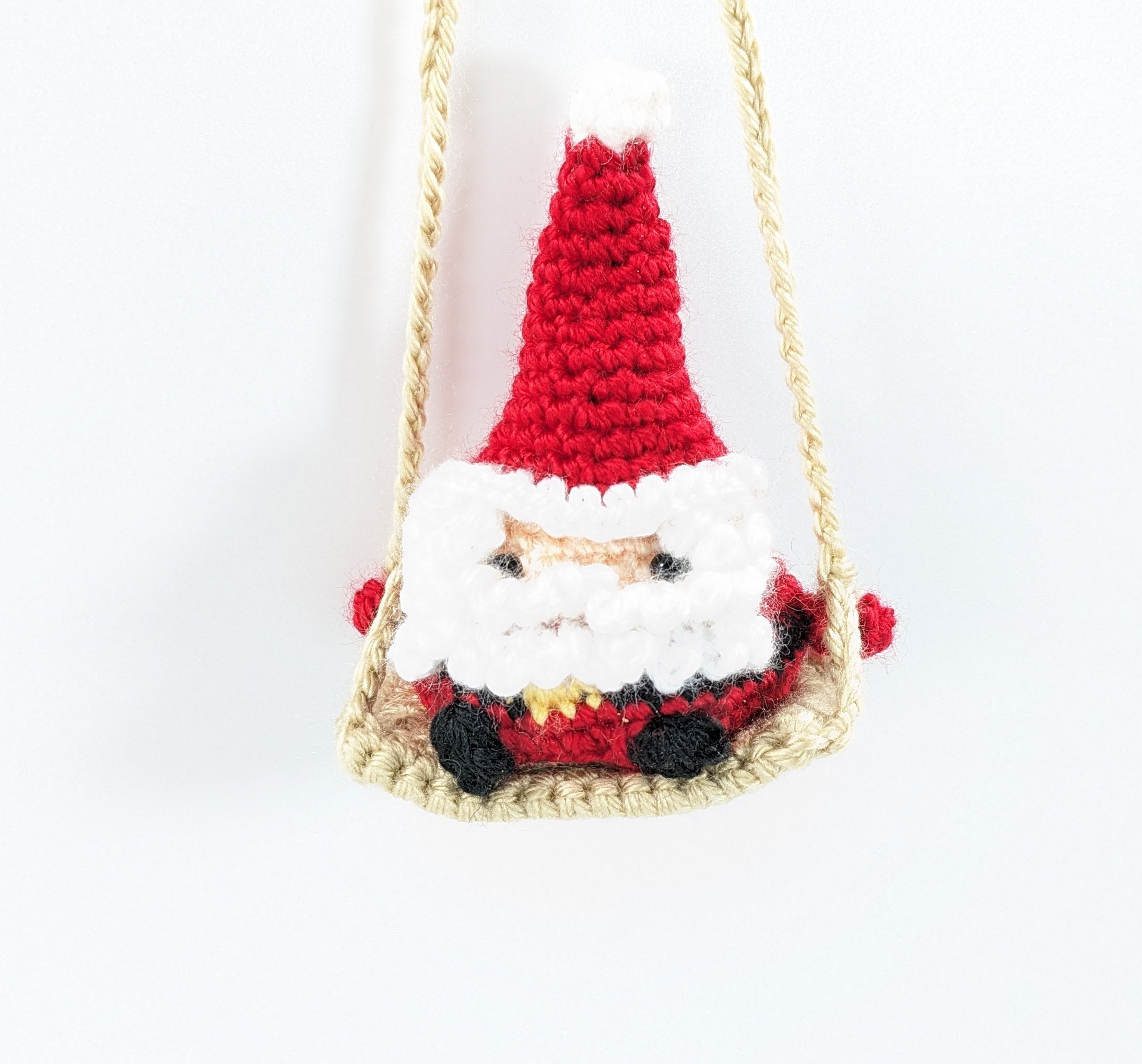 Also this Christmas Santa Car/Home Decor is crochet with acrylic yarn and filled with fiberfill. He also has small plastic safety eyes.